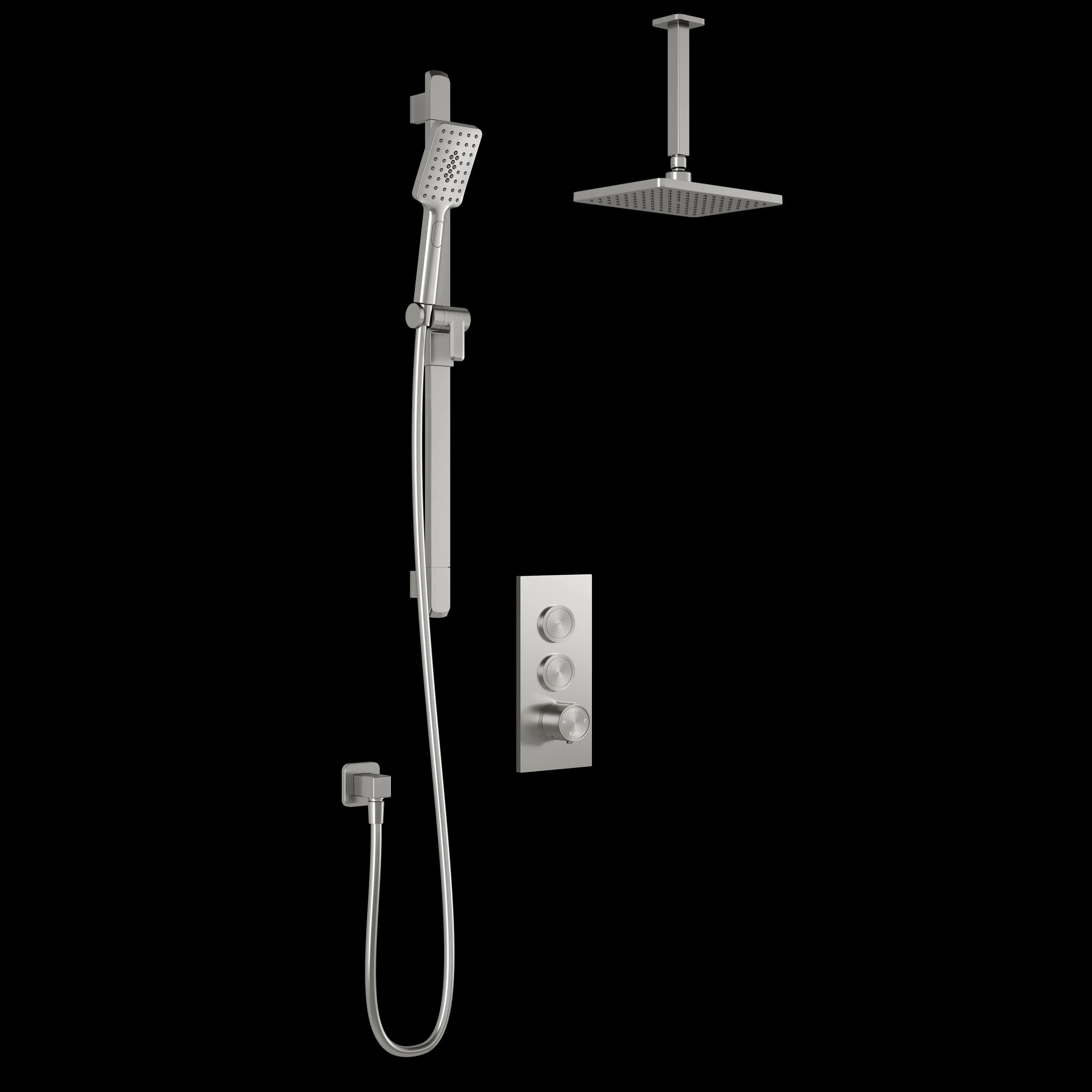 Kalia KAREO TB2 : AQUATONIK T/P Push-Button Shower System with Vertical Ceiling Arm Pure Nickel