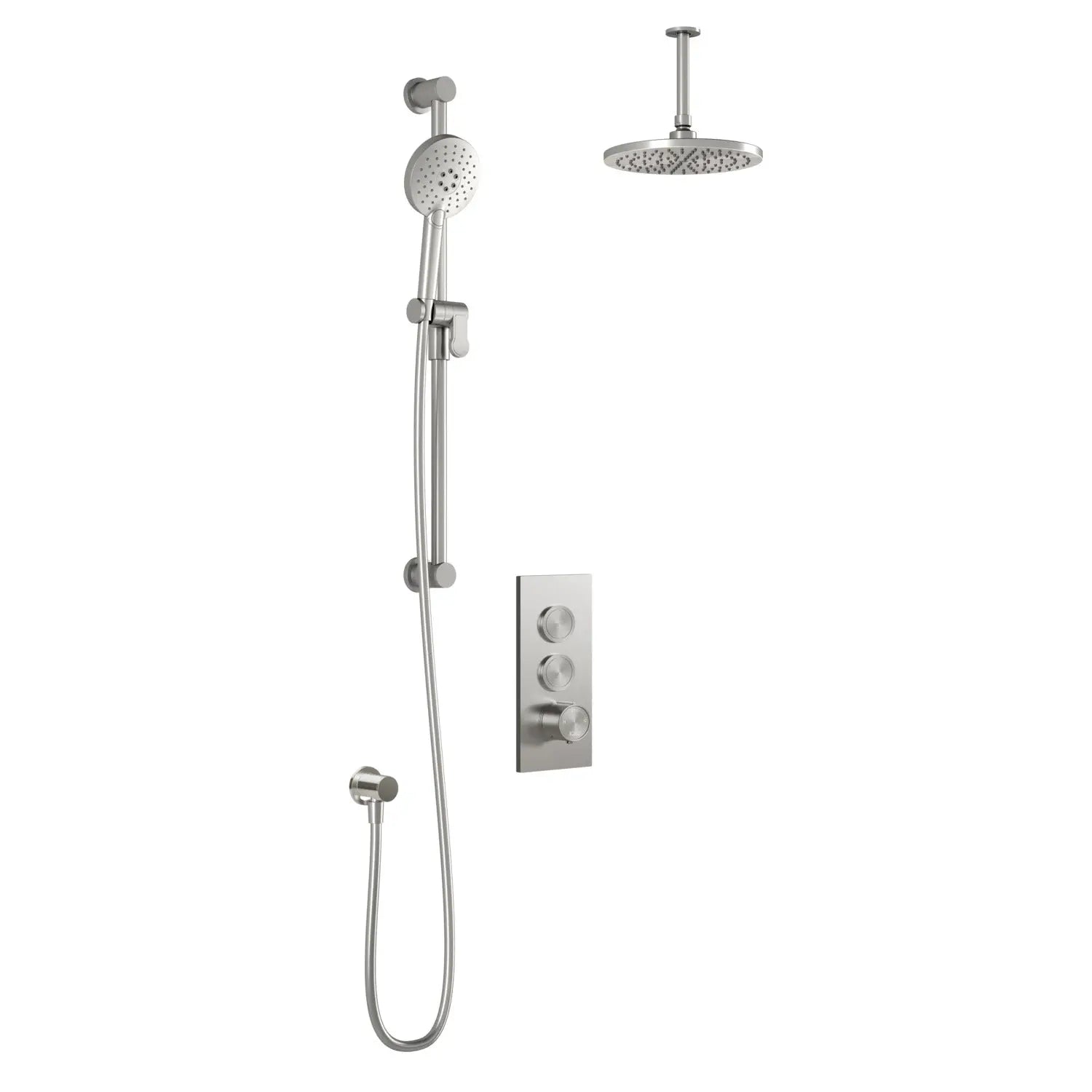 Kalia RoundOneTB2 : AQUATONIK T/P Push-Button Shower System with Vertical Ceiling Arm Pure Nickel PVD BF2064-125-001