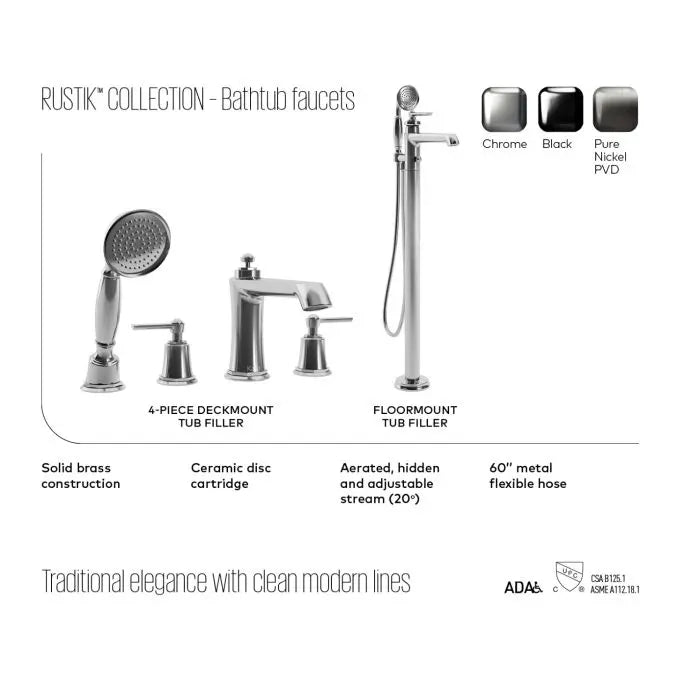 Kalia Rustik Free Standing Bathtub Tub Filler Faucet With Hand Shower