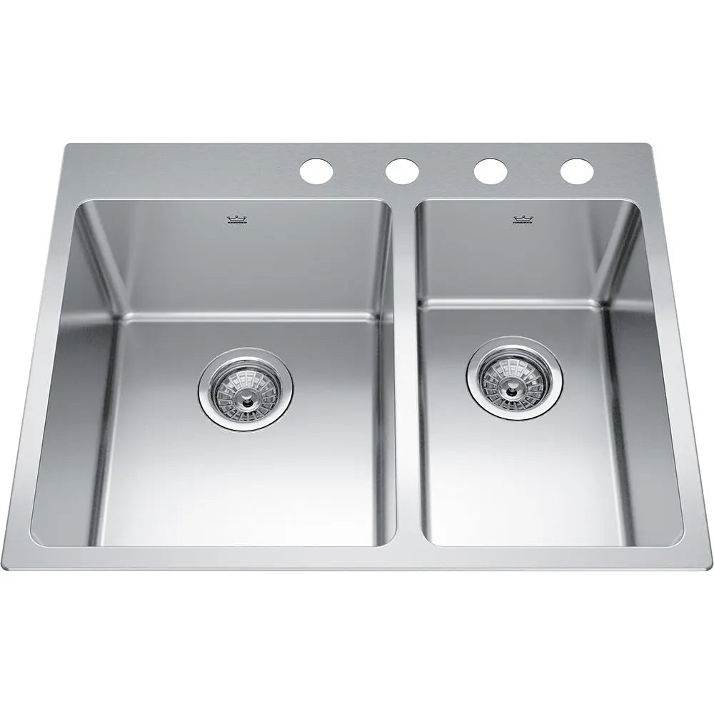 Kindred Brookmore 27" x 21" Double Bowl 4 Faucet Hole Drop-in Kitchen Sink Stainless Steel BCL2127R-9-4 Kindred
