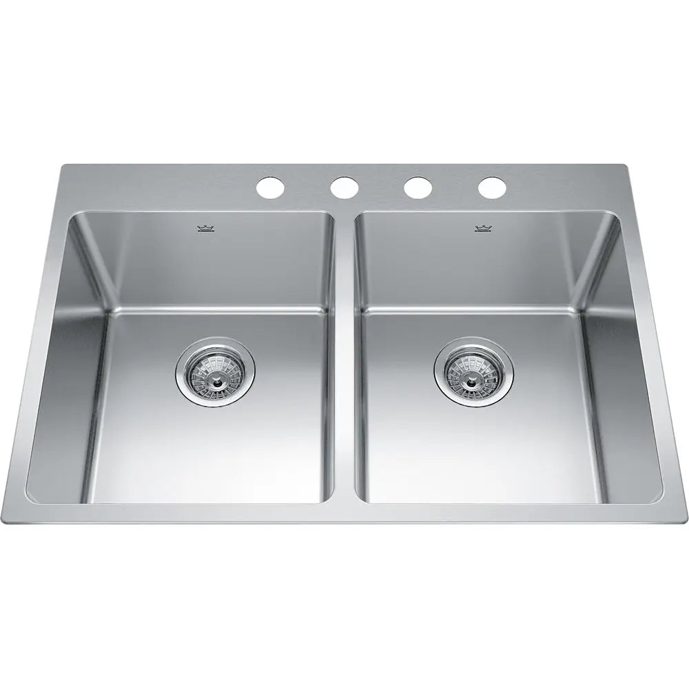 Kindred Brookmore 30.87" x 20.87" Drop in Double Bowl 4-Hole Stainless Steel Kitchen Sink BDL2131-9-4 Kindred