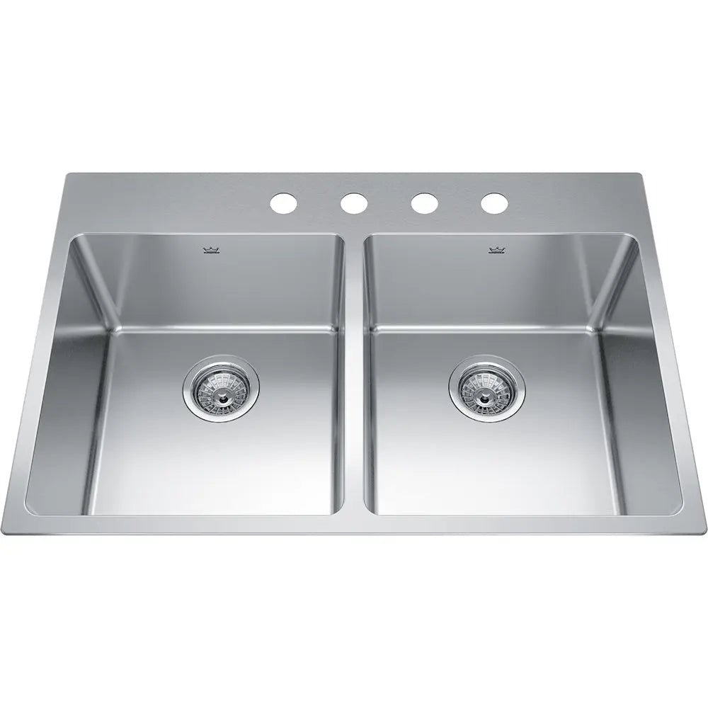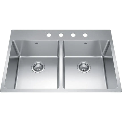 Kindred Brookmore 32.87" x 22" Drop in Double Bowl Stainless Steel Kitchen Sink BDL2233-9-4 Kindred