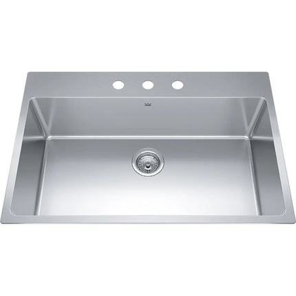 Kindred Brookmore 32.87" x 22" Drop in Single Bowl 3 Faucet Hole Stainless Steel Kitchen Sink BSL2233-9-3 Kindred