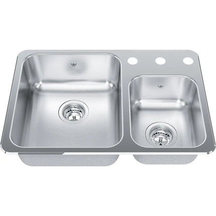 Kindred Steel Queen Drop-In Kitchen Sink, 2 Bowls, 3 Holes, Stainless Steel.