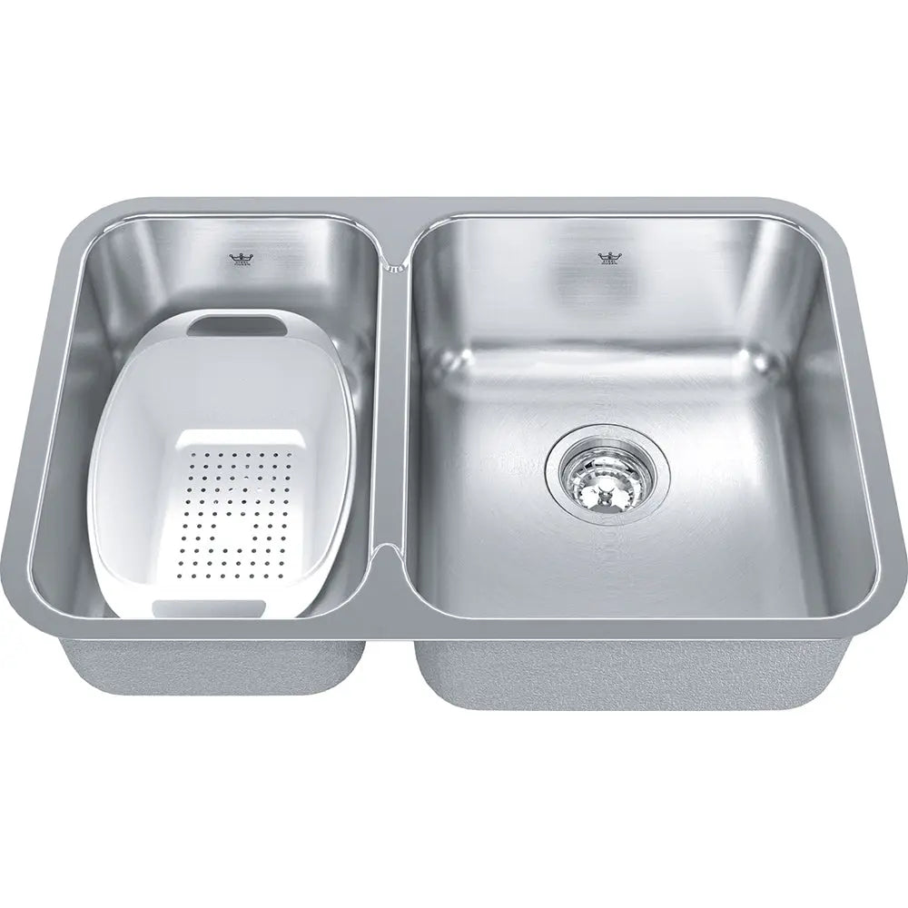 Kindred Steel Queen 26.87" x 17.75" Double Bowl Undermount 20 Gauge Kitchen Sink Stainless Steel QCUA1827L-8