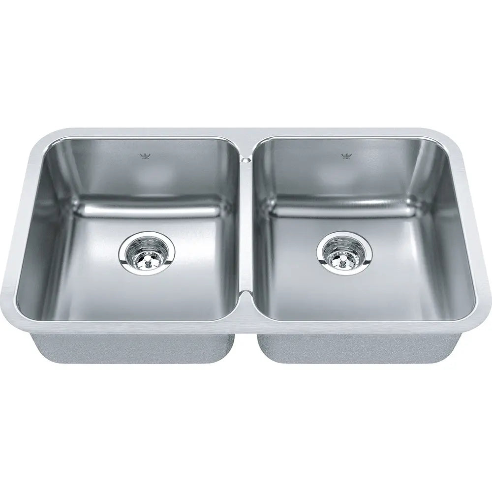 Kindred Steel Queen 30" x 17" Double Bowl Undermount 20 Gauge Kitchen Sink Stainless Steel QDUA1831-8