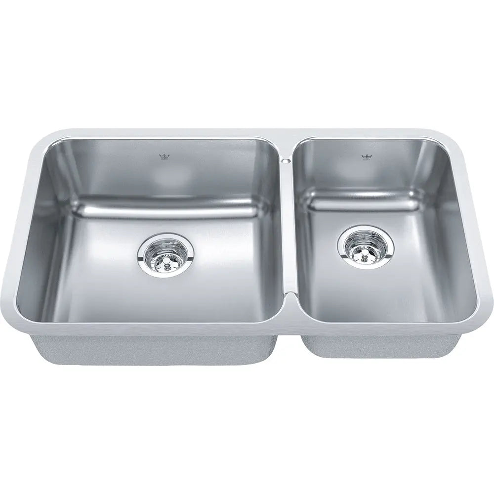 Kindred Steel Queen 32" x 18" Double Bowl Undermount 20 Gauge Kitchen Sink Stainless Steel QCUA1933R-8