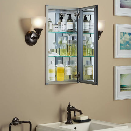 Kohler 15" W x 26" H aluminum single-door medicine cabinet with mirrored door, beveled edges K-CB-CLC1526FS