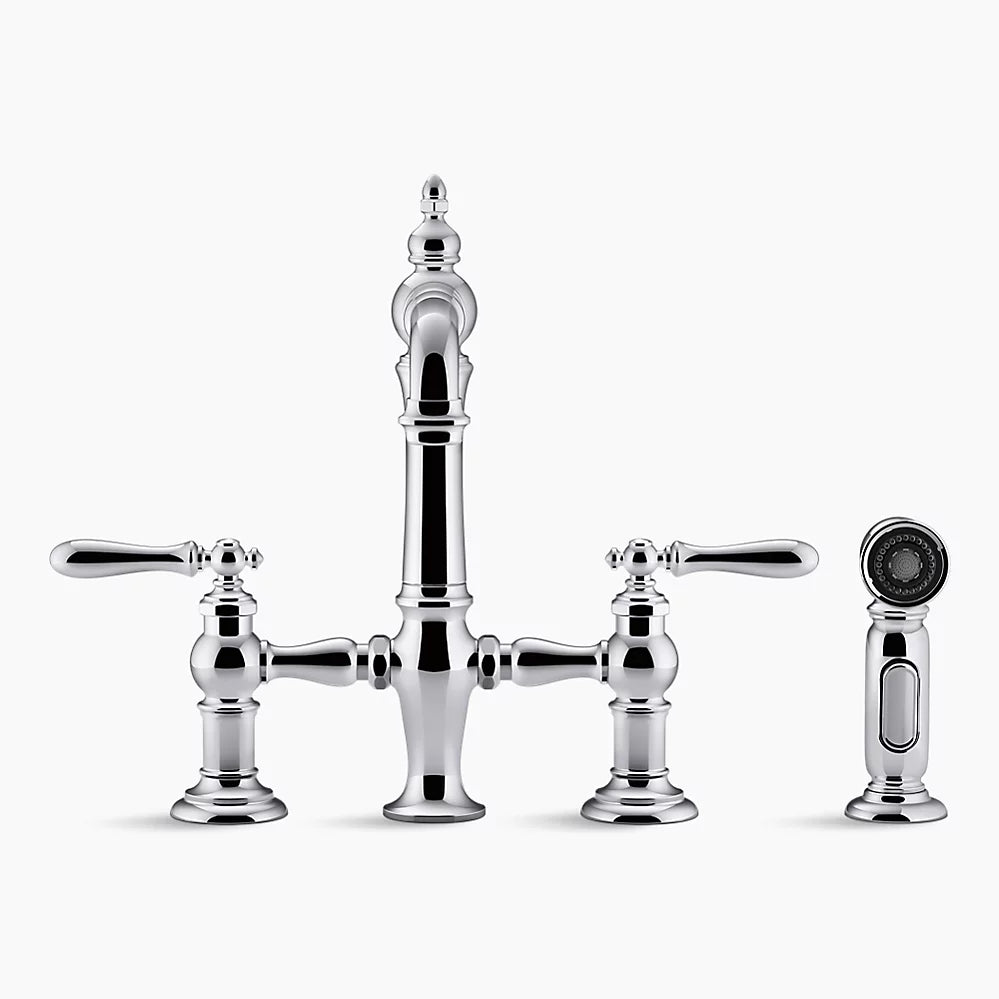 Kohler Artifacts Two-hole bridge bar sink faucet with side sprayer K-76520-4-2MB