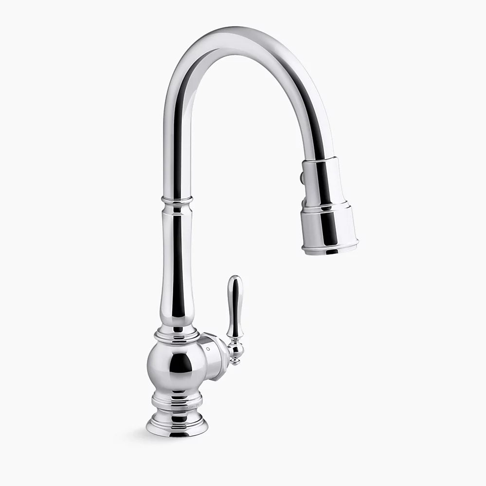 Kohler Artifacts Touchless pull-down kitchen sink faucet with three-function sprayhead K-29709-CP
