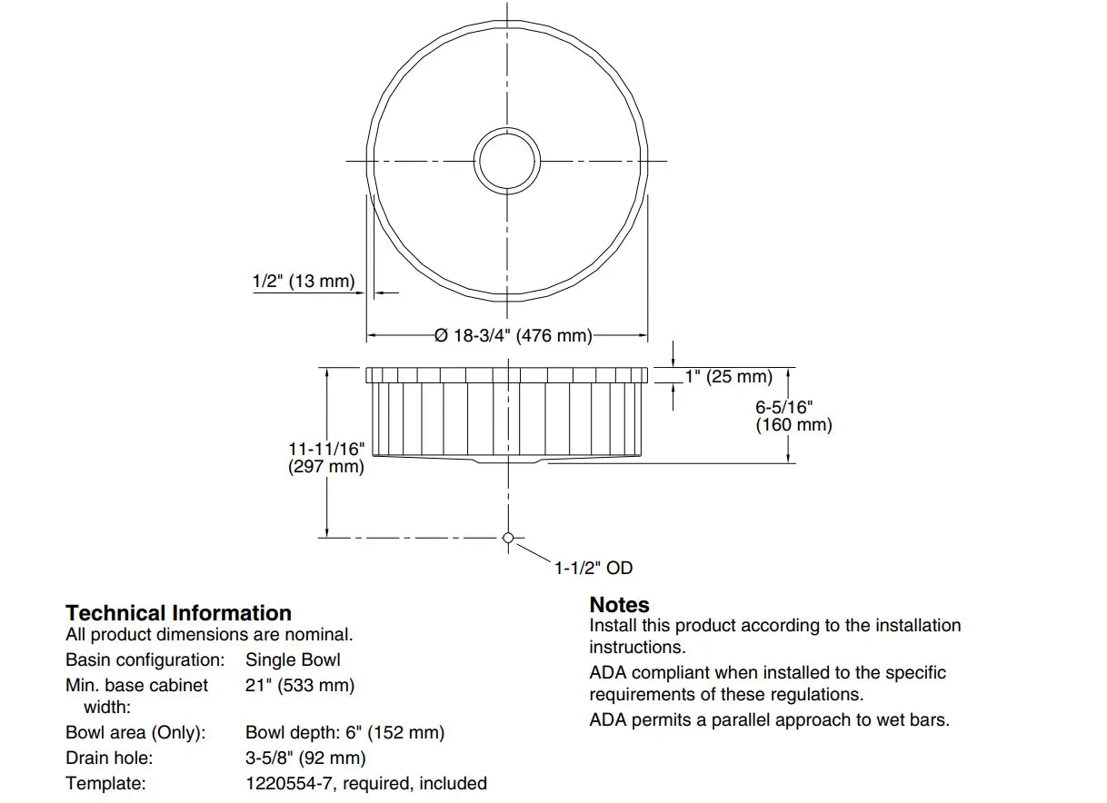 Kohler Brinx 18-3/4" Top-Mount Single-Bowl Bar Sink K-3674-NA