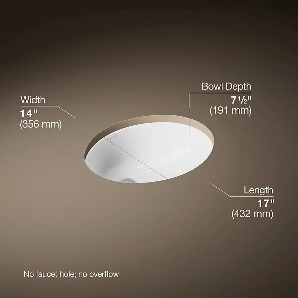 Kohler Caxton 15 Inch Oval Undermount Bathroom Sink 2209-0 - Plumbing Market