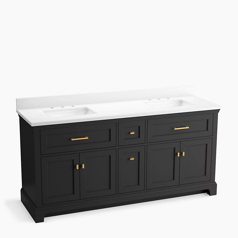 Kohler Charlemont 72" bathroom vanity cabinet with sinks and quartz top K-29264-BD1-DWG