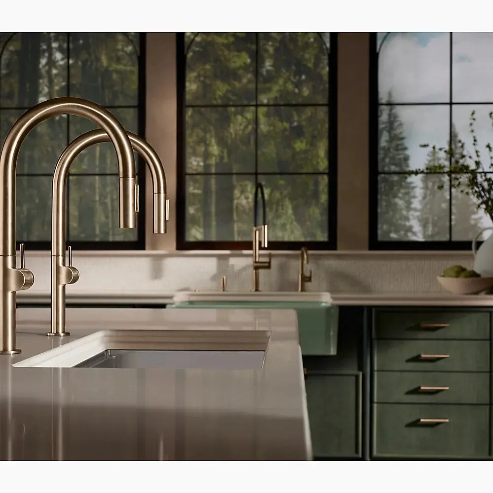 Sleek and minimalist, the Components collection exudes calm sophistication. Strong, confident lines create bold and distinctive silhouettes accentuated by refined design details. The Components touchless pull-down kitchen sink faucet melds this very style with Response technology, two spray functions, and DockNetik secure docking system to conveniently lock the sprayhead in place with not in use.