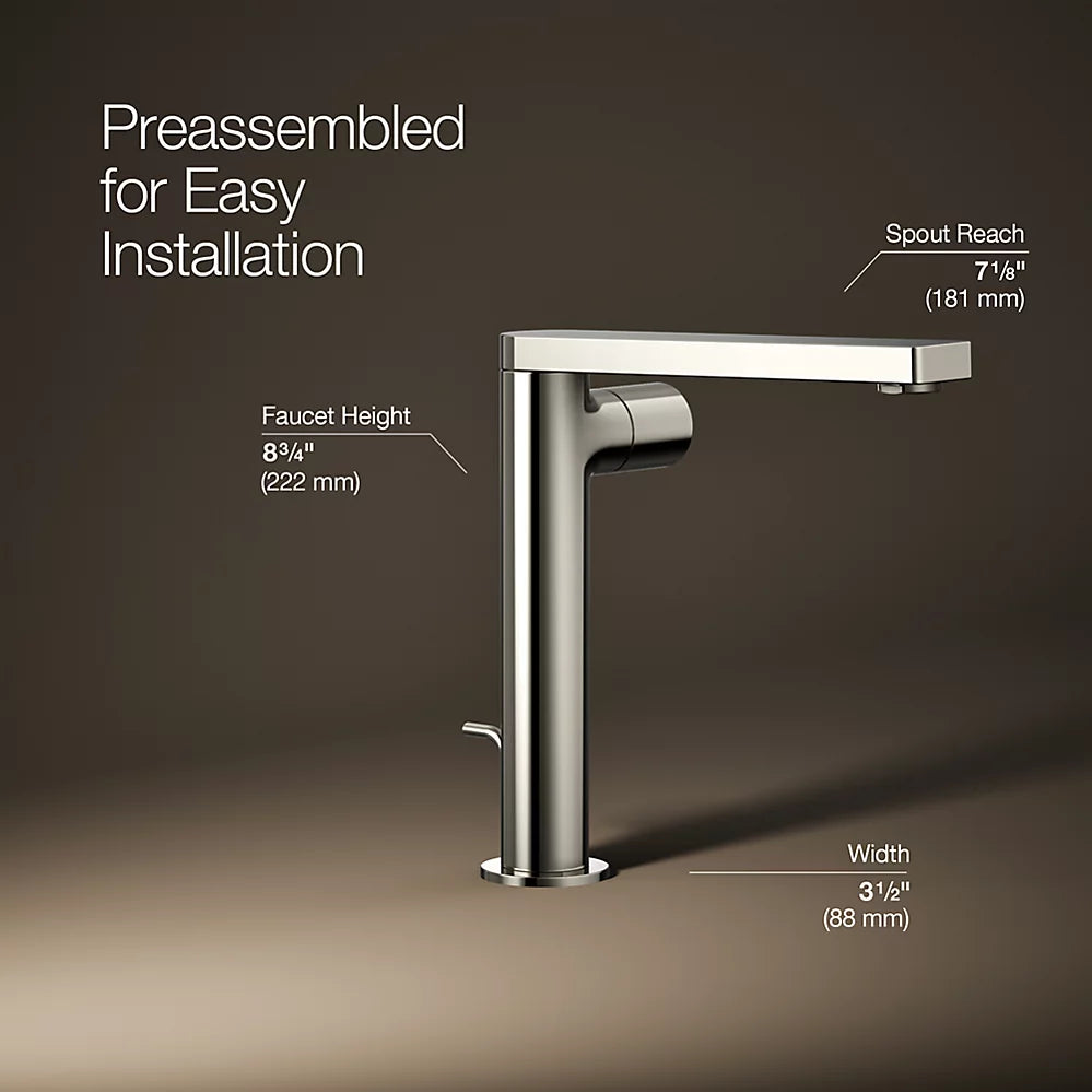 Kohler Composed Tall single-handle bathroom sink faucet with Cylindrical handle, 1.2 gpm K-73159-7-SN