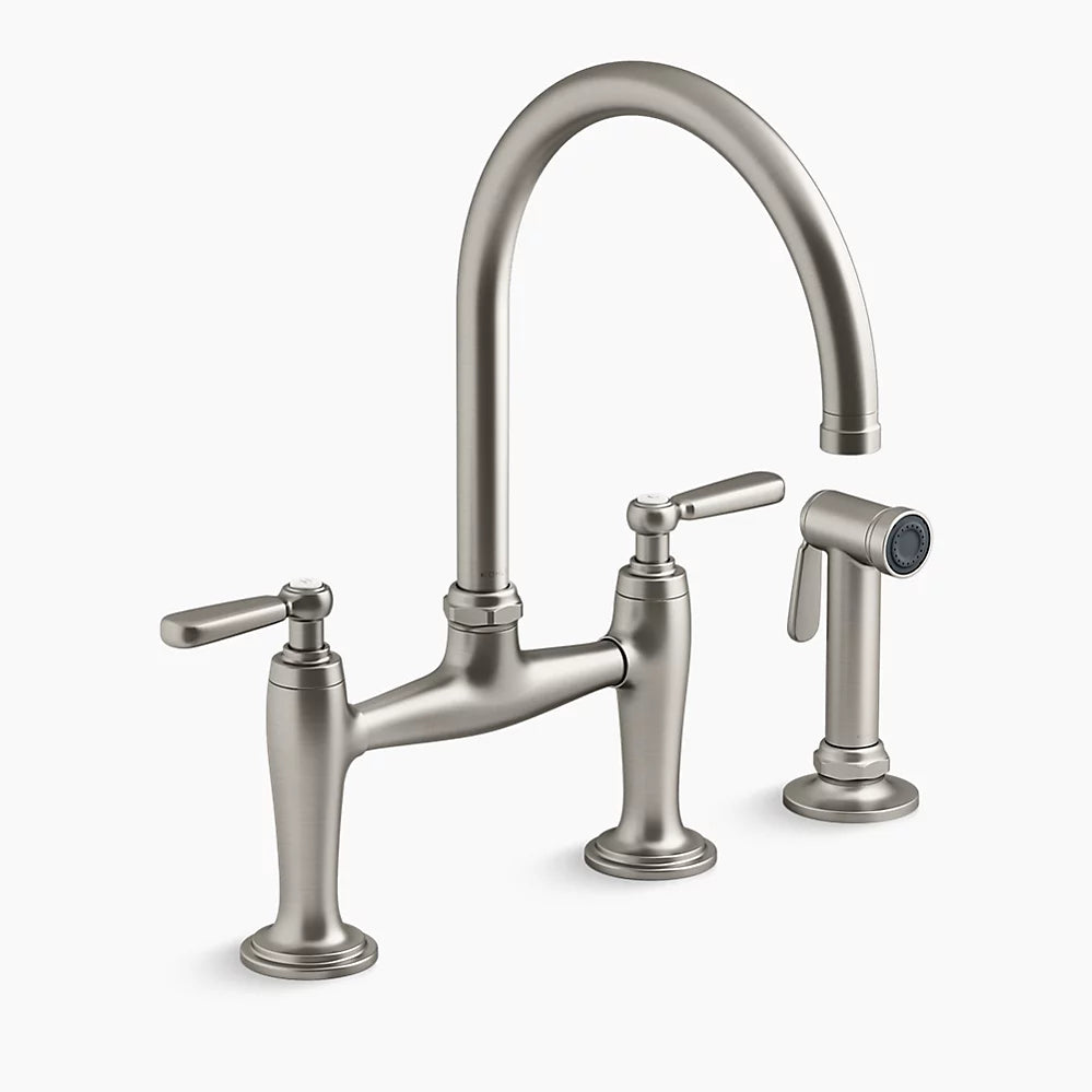 Kohler Edalyn by Studio McGee Two-hole bridge kitchen sink faucet with side sprayer K-28356-VS