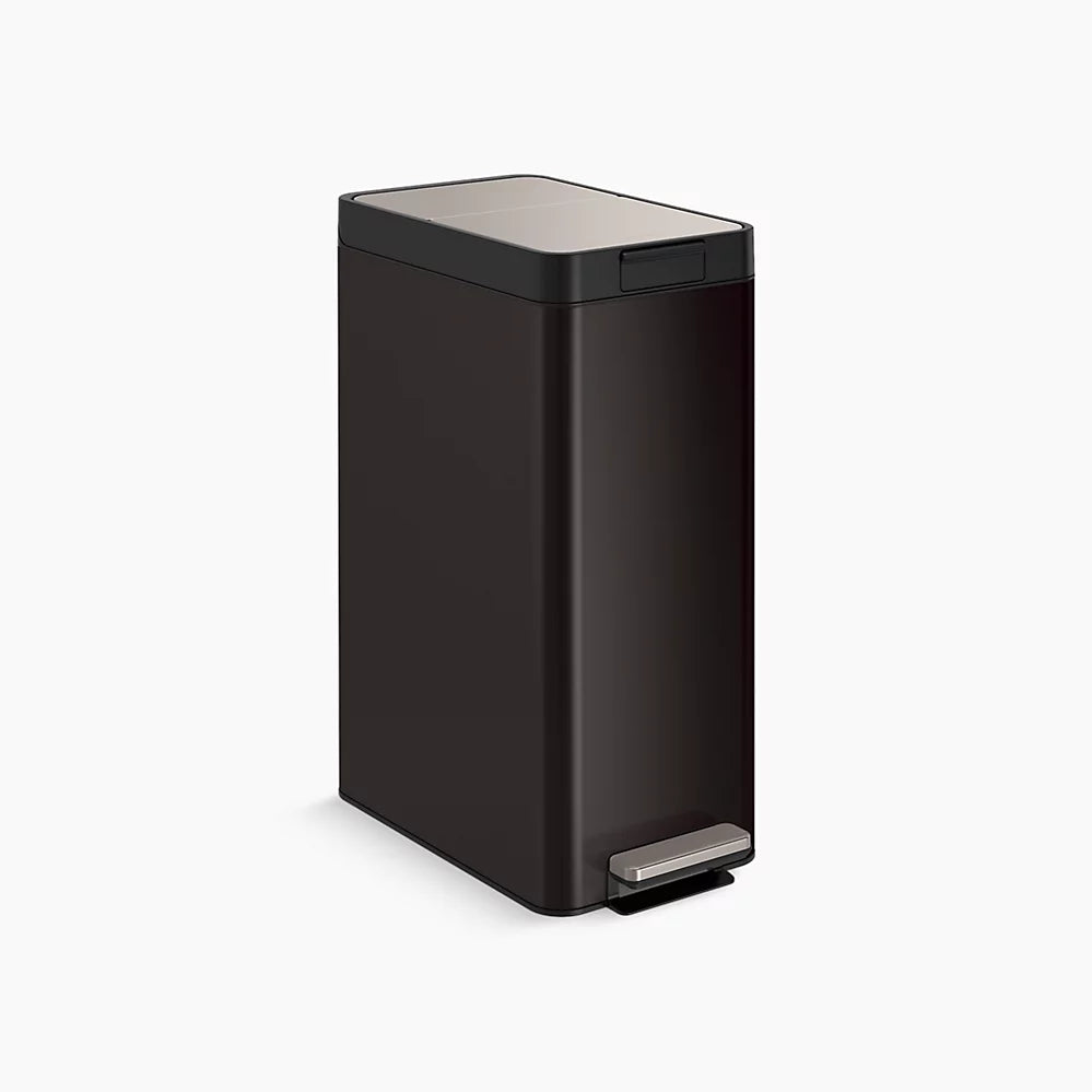 Kohler 13-gallon stainless steel slim step trash can with bifold lid K-23826-BST