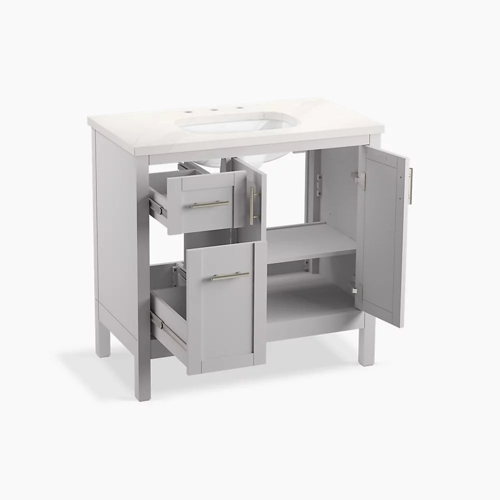 Kohler Hadron 36" bathroom vanity cabinet with sink and quartz top K-39605-ASB-AGA