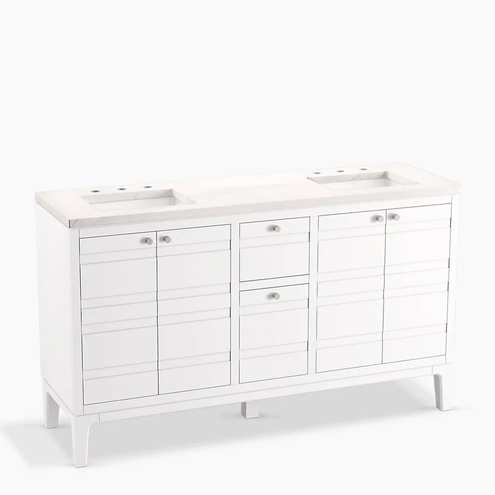 Kohler Helst 60" bathroom vanity cabinet with sinks and quartz top K-33527-ASB-0
