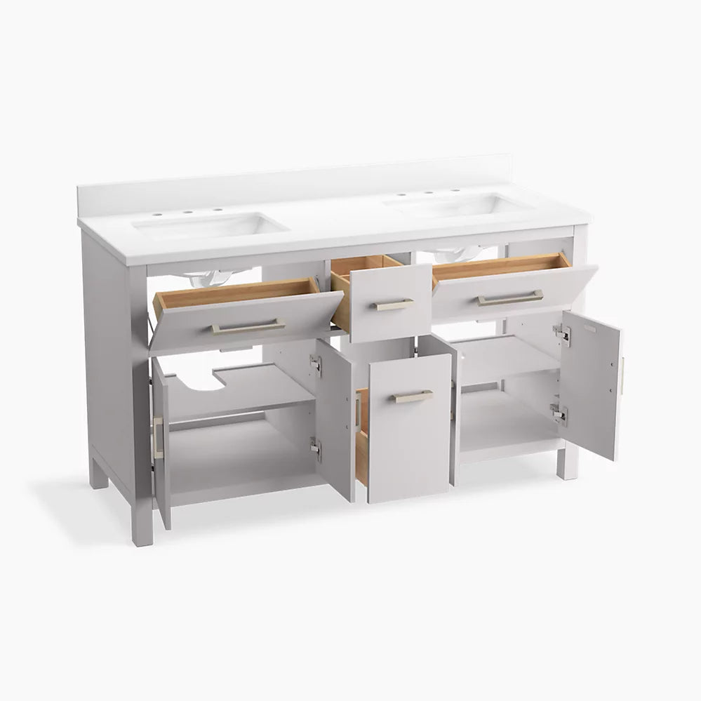 Kohler Kresla 60" bathroom vanity cabinet with sinks and quartz top K-40641-BD1-AGA