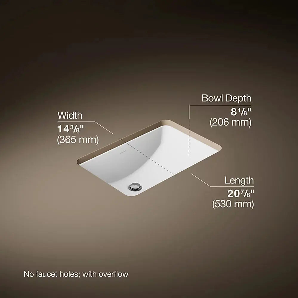 Kohler Ladena 21 Inch Rectangular Undermount Bathroom Sink 2214-0
