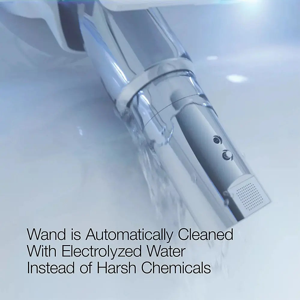 - Self-cleaning function uses UV light and electrolyzed water systems to automatically clean the wand surfaces