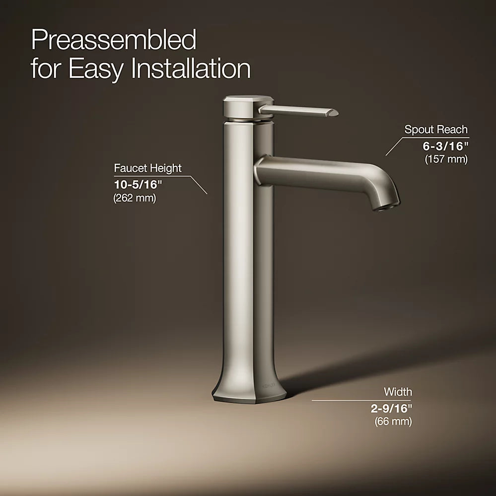 Kohler Occasion Tall single-handle bathroom sink faucet, 0.5 gpm K-27003-4N-BN