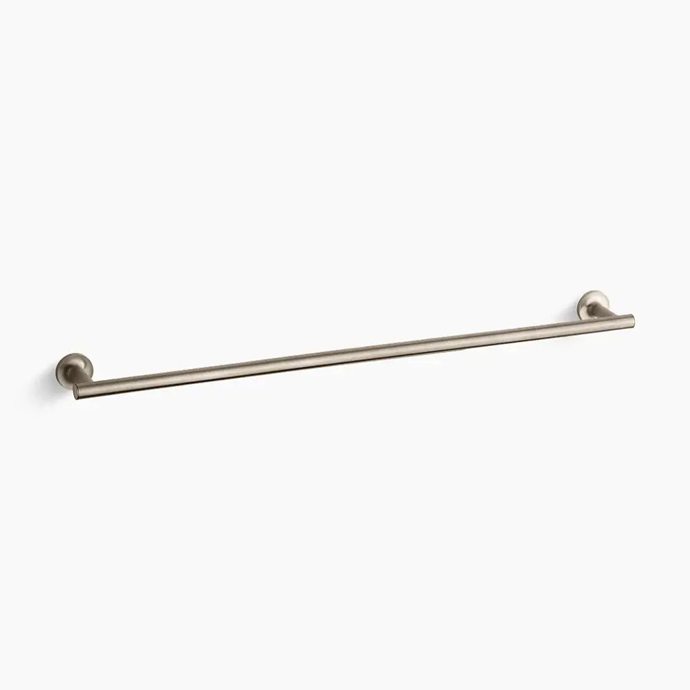 Purist accessories combine architectural forms with sensual design lines for a modern, minimalist look. Featuring a simple, round bar held by circular plates against the wall, this towel bar brings the art of simplicity to your bath or powder room, blending in beautifully with the Purist Collection.