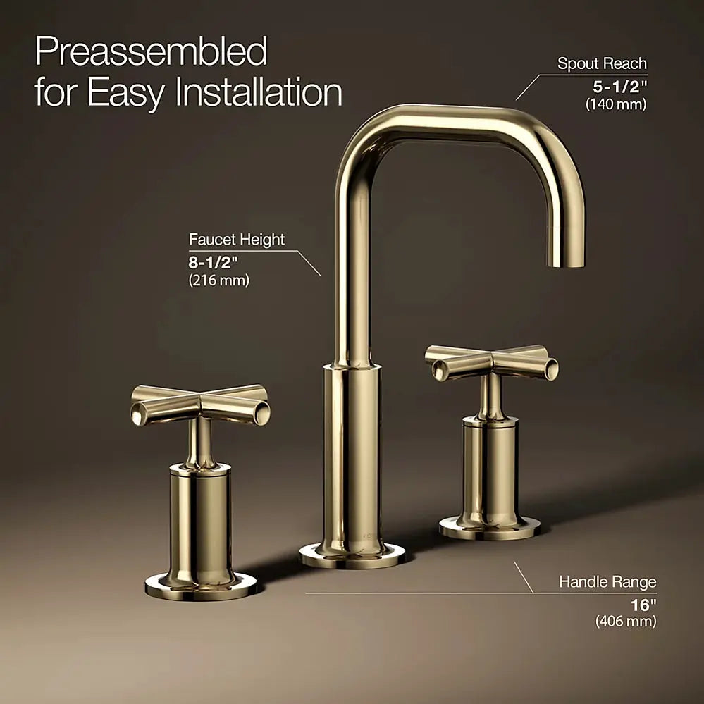 Kohler Purist Widespread bathroom sink faucet with Cross handles, 1.2 gpm K-14406-3-AF