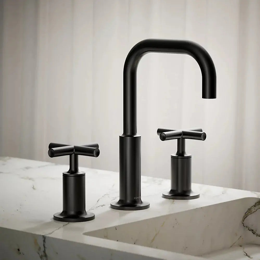 Kohler Purist Widespread bathroom sink faucet with Cross handles, 1.2 gpm K-14406-3-BL