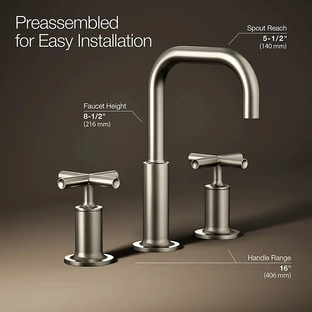 Kohler Purist Widespread bathroom sink faucet with Cross handles, 1.2 gpm K-14406-3-BN