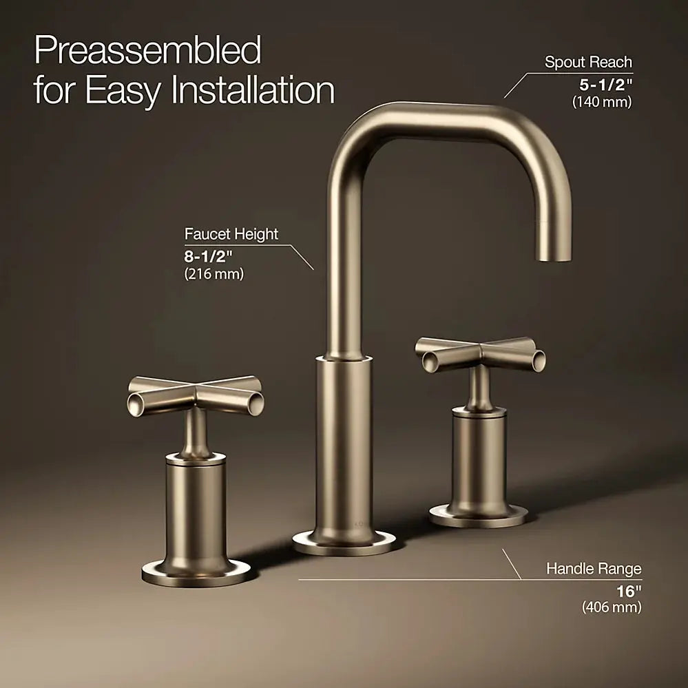 Kohler Purist Widespread bathroom sink faucet with Cross handles, 1.2 gpm K-14406-3-BV
