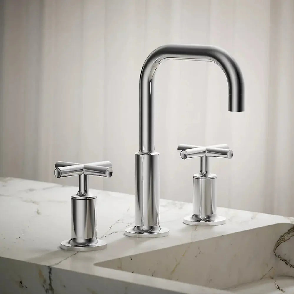 Kohler Purist Widespread bathroom sink faucet with Cross handles, 1.2 gpm K-14406-3-CP