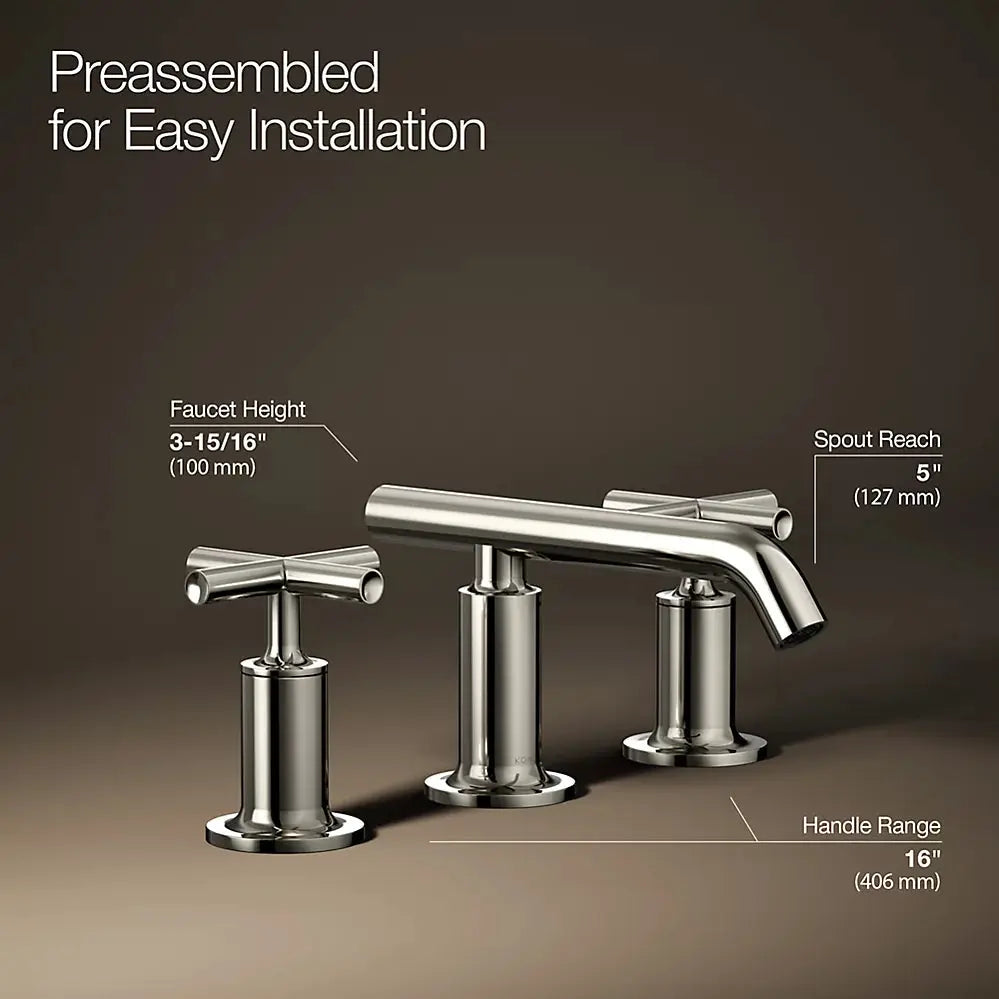 Kohler Purist Widespread bathroom sink faucet with Cross handles, 1.2 gpm K-14410-3-SN