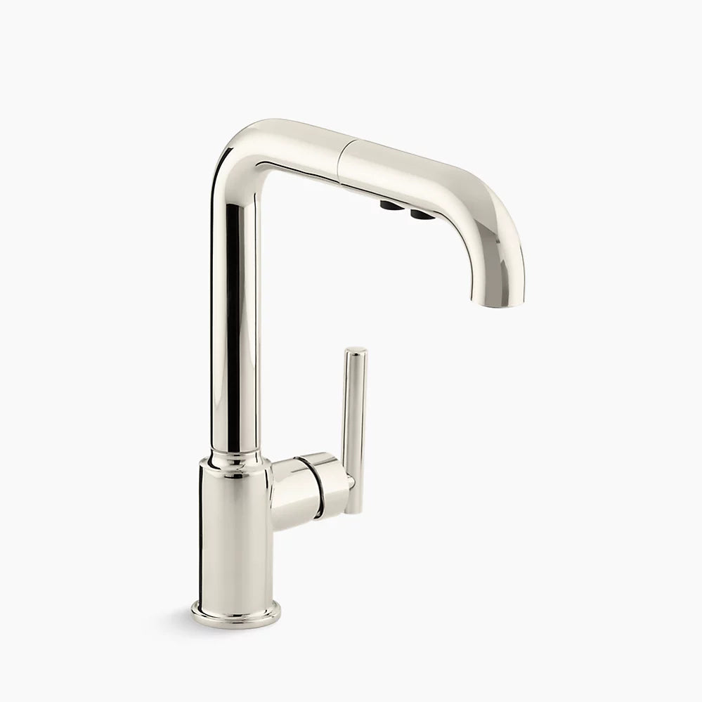 Kohler Purist Pull-out kitchen sink faucet with three-function sprayhead K-7505-SN