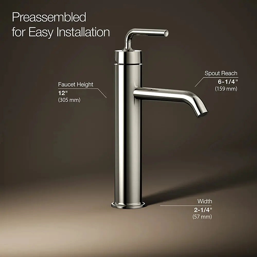 Kohler Purist Tall single-handle bathroom sink faucet with Lever handle, 1.2 gpm K-14404-4A-SN