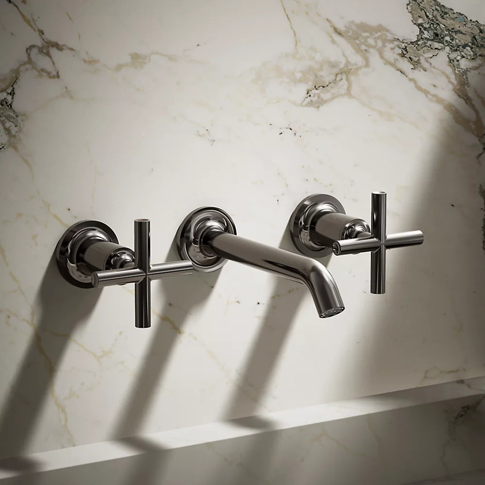 Kohler Purist Wall-mount bathroom sink faucet trim with Cross handles, 1.2 gpm K-T14413-3-TT