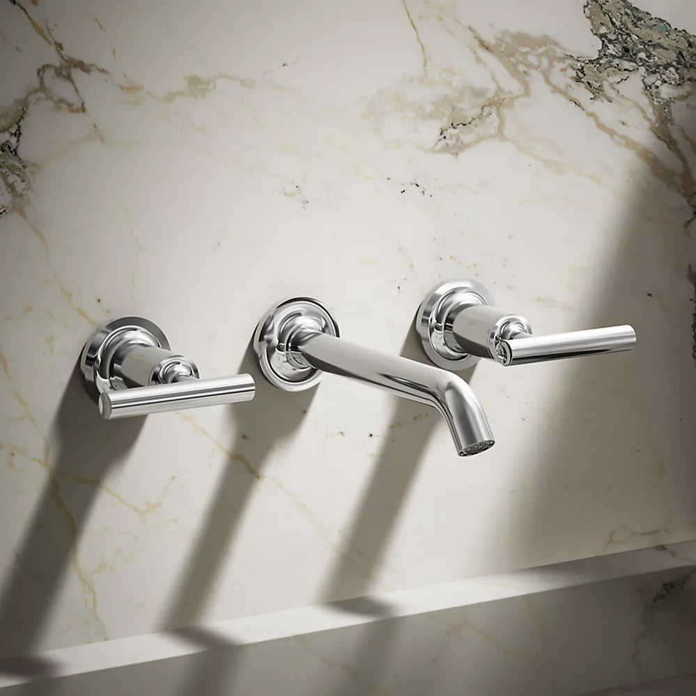 Kohler Purist Wall-mount bathroom sink faucet trim with Lever handles, 1.2 gpm K-T14413-4-CP