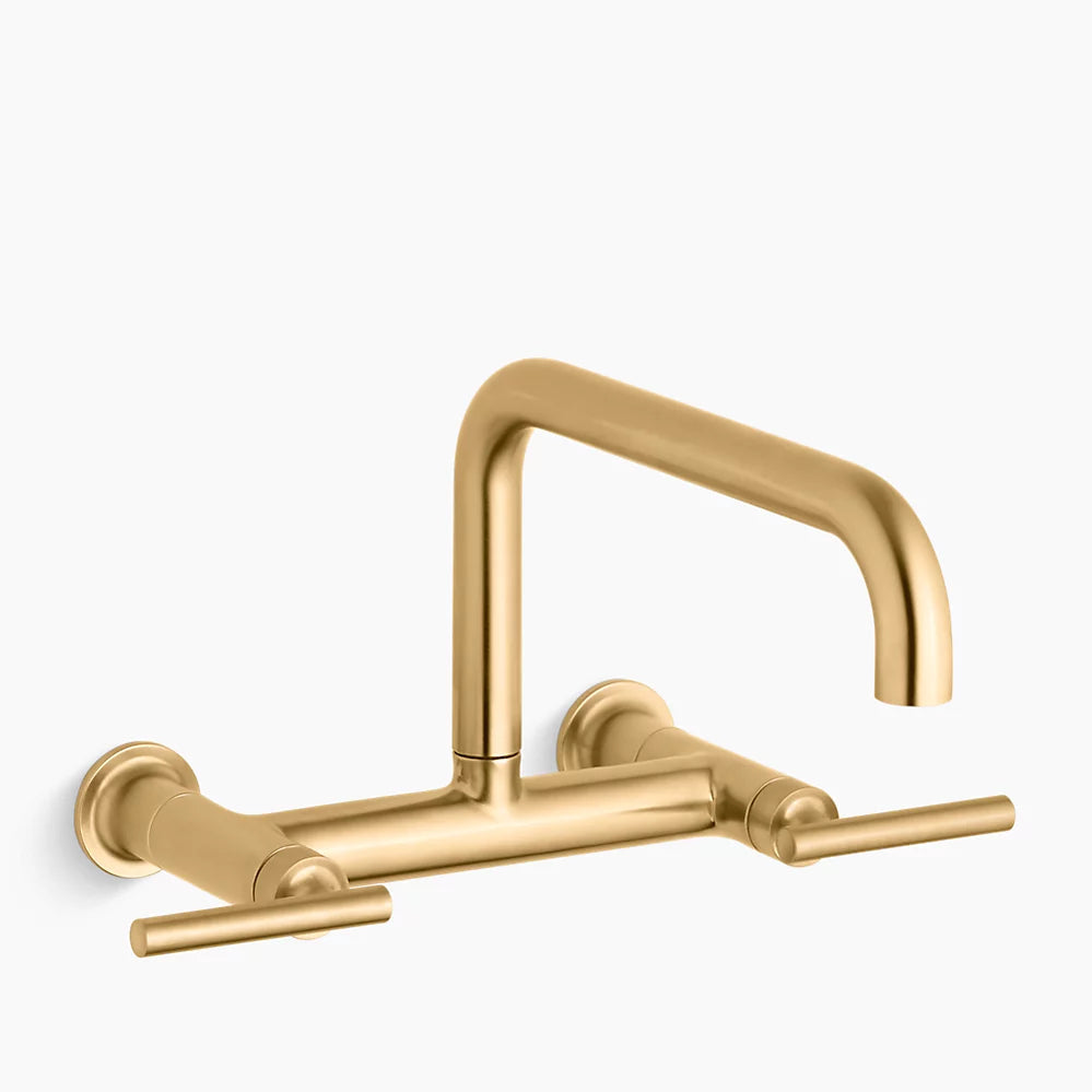 Kohler Purist Two-hole wall-mount bridge kitchen sink faucet K-7549-4-2MB
