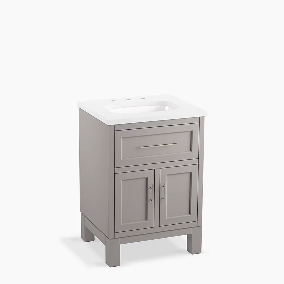 Kohler Quo 24" bathroom vanity cabinet with sink and quartz top K-28379-ASB-1WT