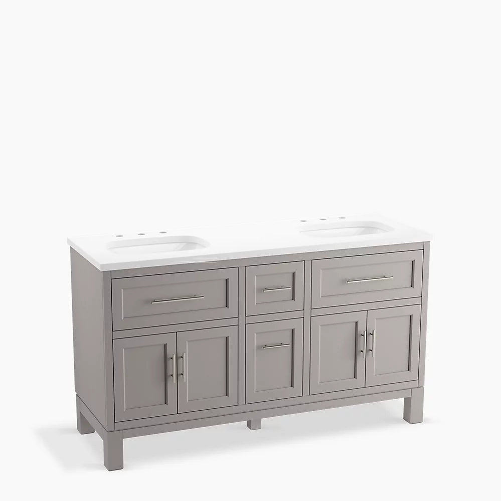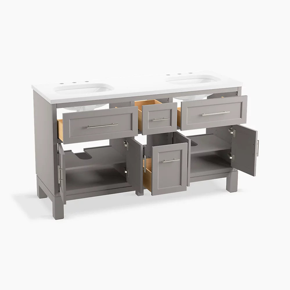 Kohler Quo 60" bathroom vanity cabinet with sinks and quartz top K-31246-ASB-1WT