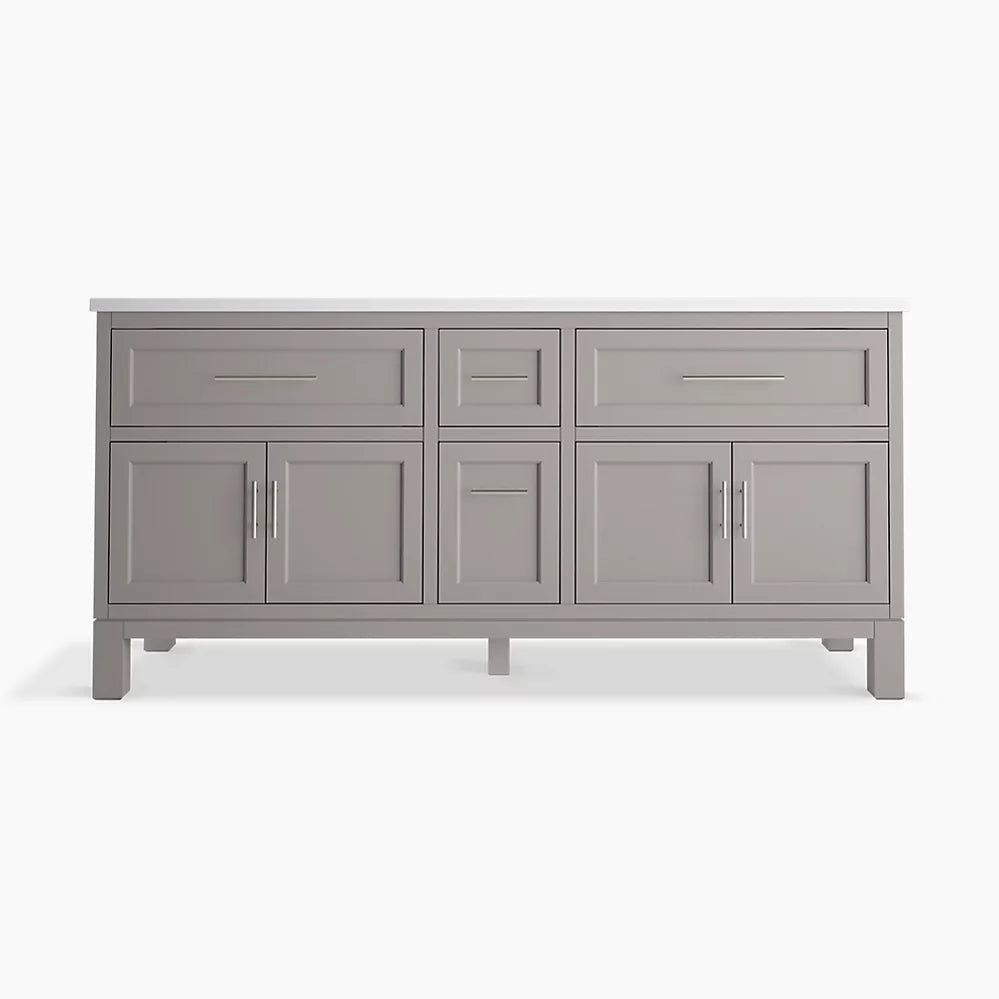 Kohler Quo 72" bathroom vanity cabinet with sinks and quartz top K-31247-ASB-1WT