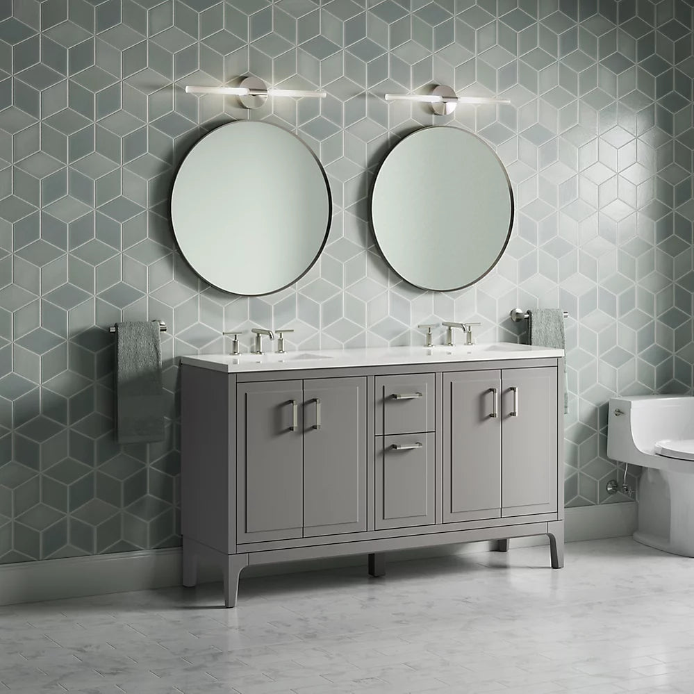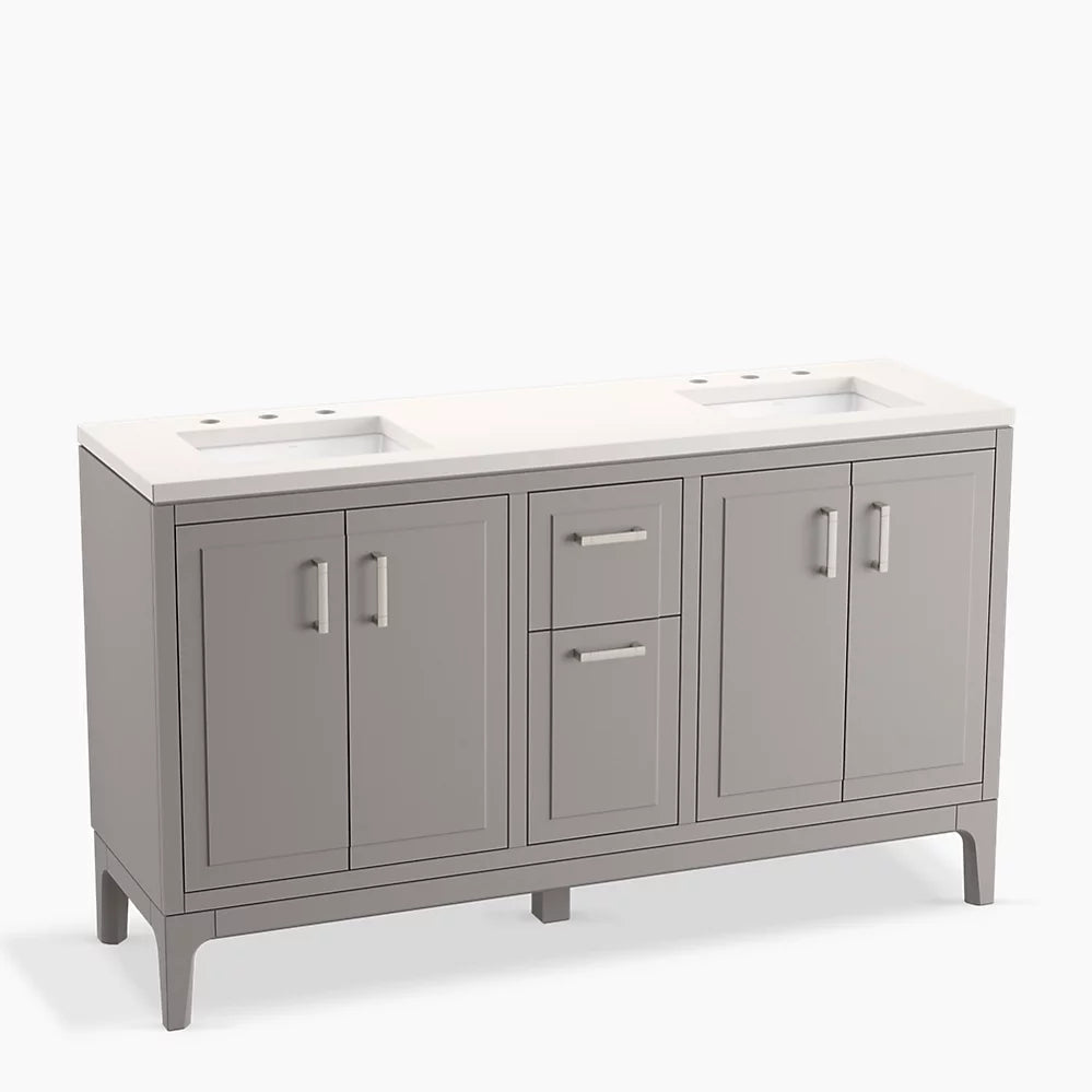 Kohler Seer 60" bathroom vanity cabinet with sinks and quartz top K-33555-ASB-1WT
