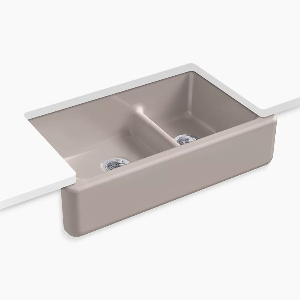 Kohler Whitehaven Smart Divide 35-3/4" undermount double-bowl farmhouse kitchen sink K-6427-TRF