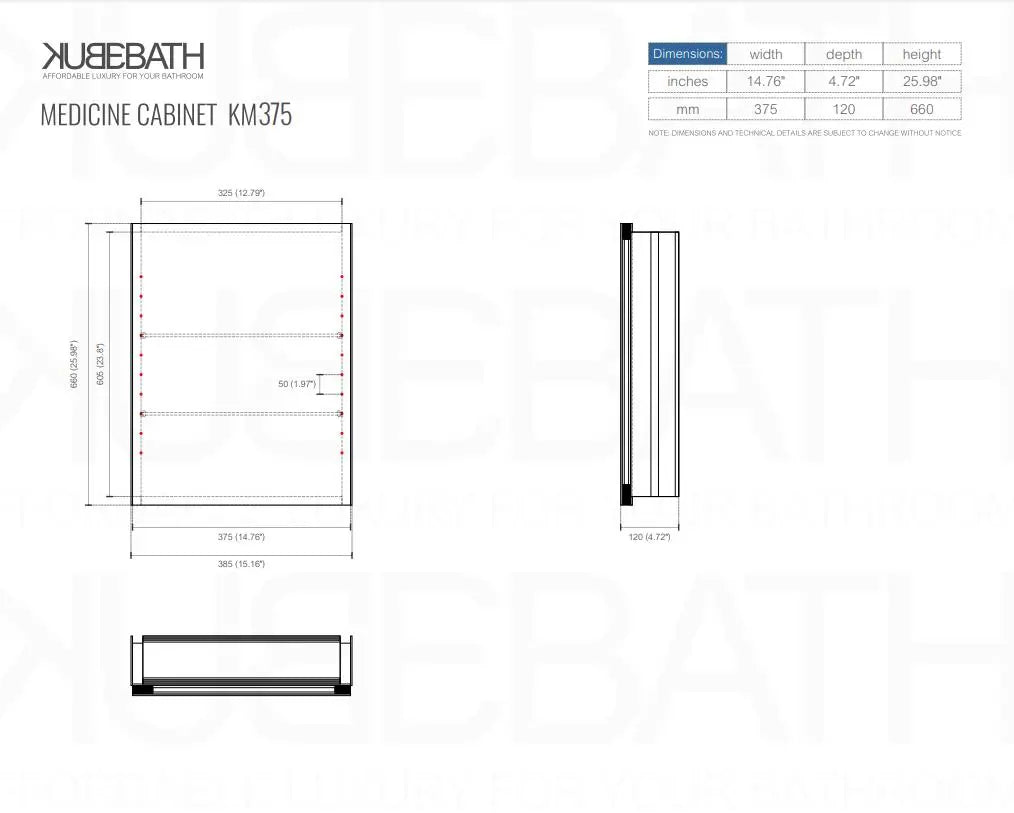 Kube Bath 15 Inch Wide Medicine Cabinet With Mirror