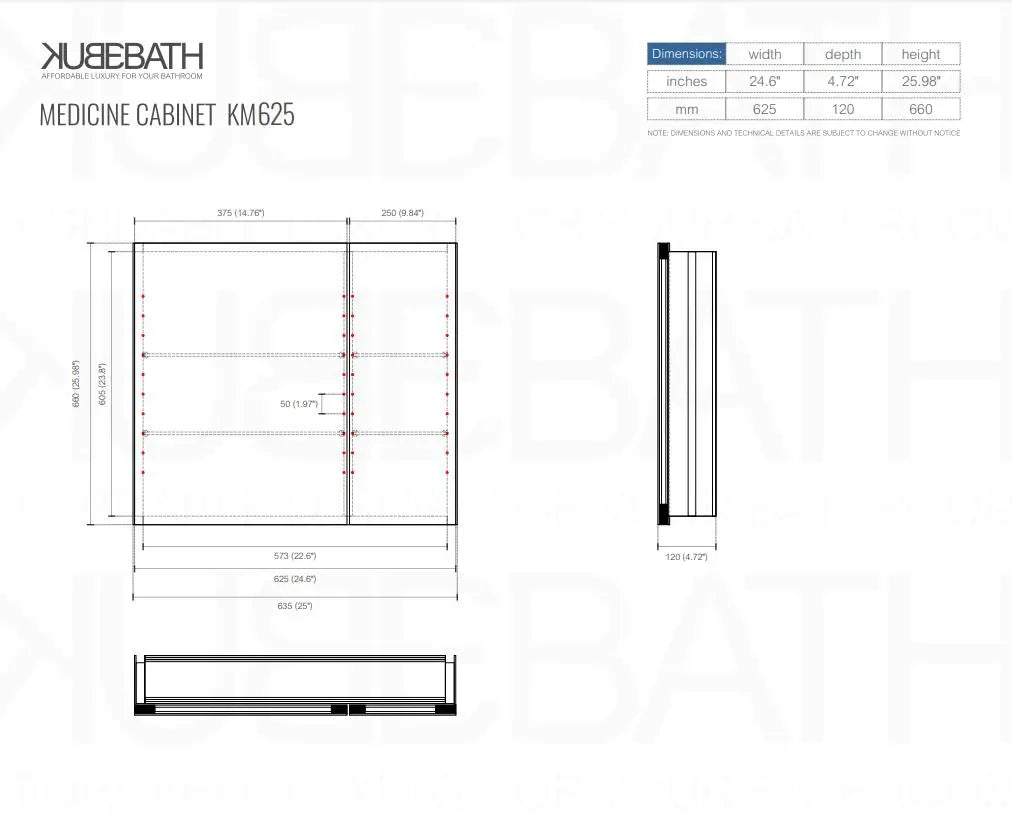 Kube Bath 25 Inch Wide Mirrored Bathroom Medicine Cabinet