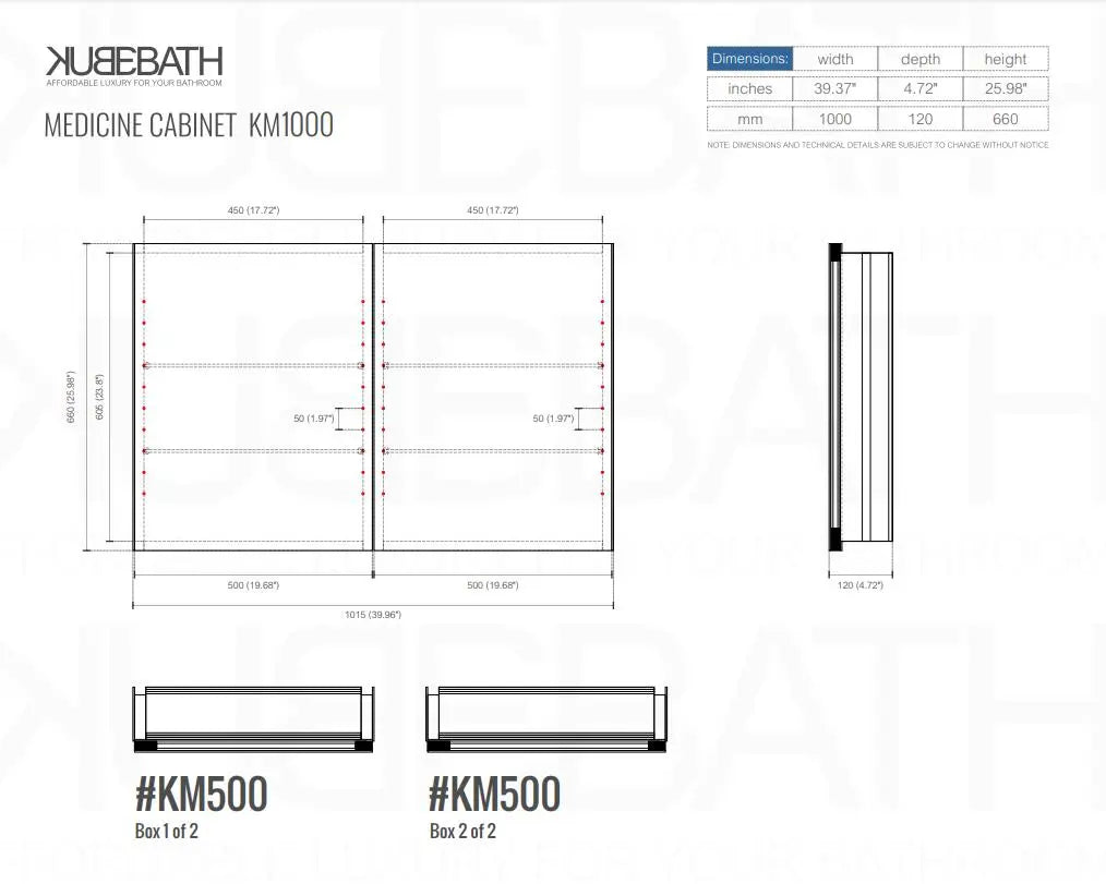 Kube Bath 40 Inch Mirrored Bathroom Medicine Cabinet
