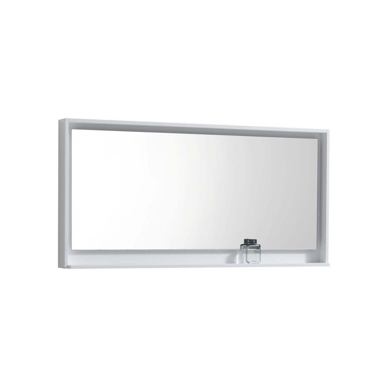 Kube Bath 60" Wide Framed Mirror With Shelf – High Gloss White