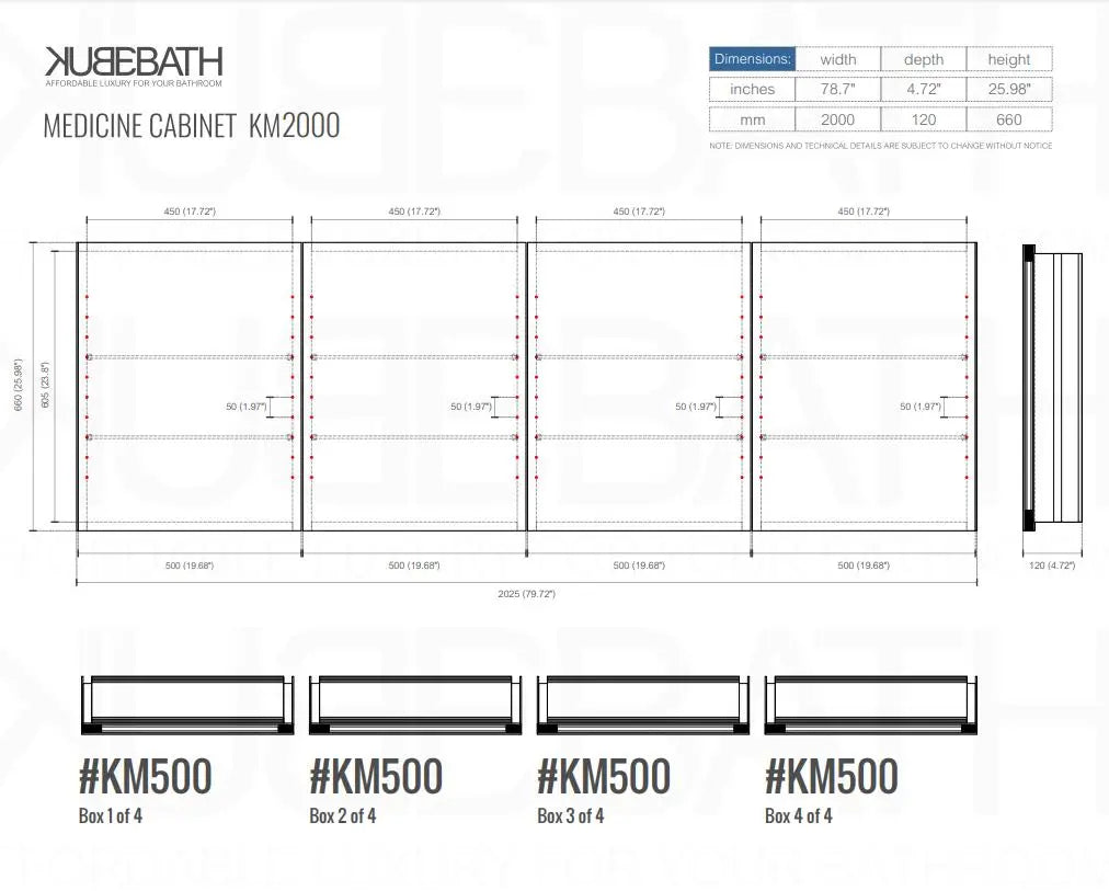 Kube Bath 79 Inch Wide Mirrored Bathroom Medicine Cabinet