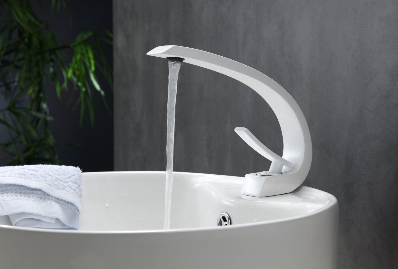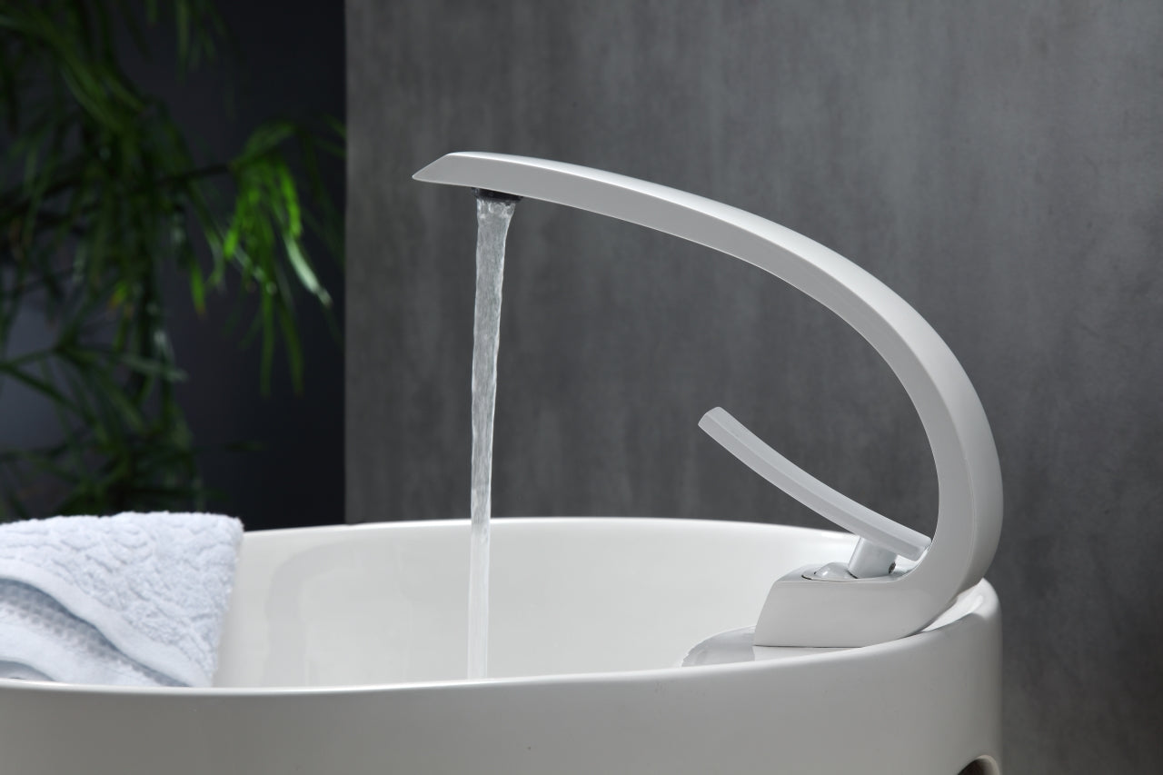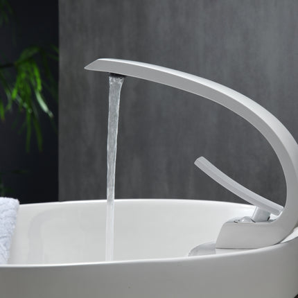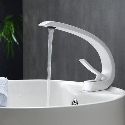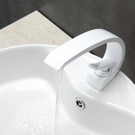 Kube Bath Aqua Arcco Single Hole Mount Bathroom Vanity Faucet – White
